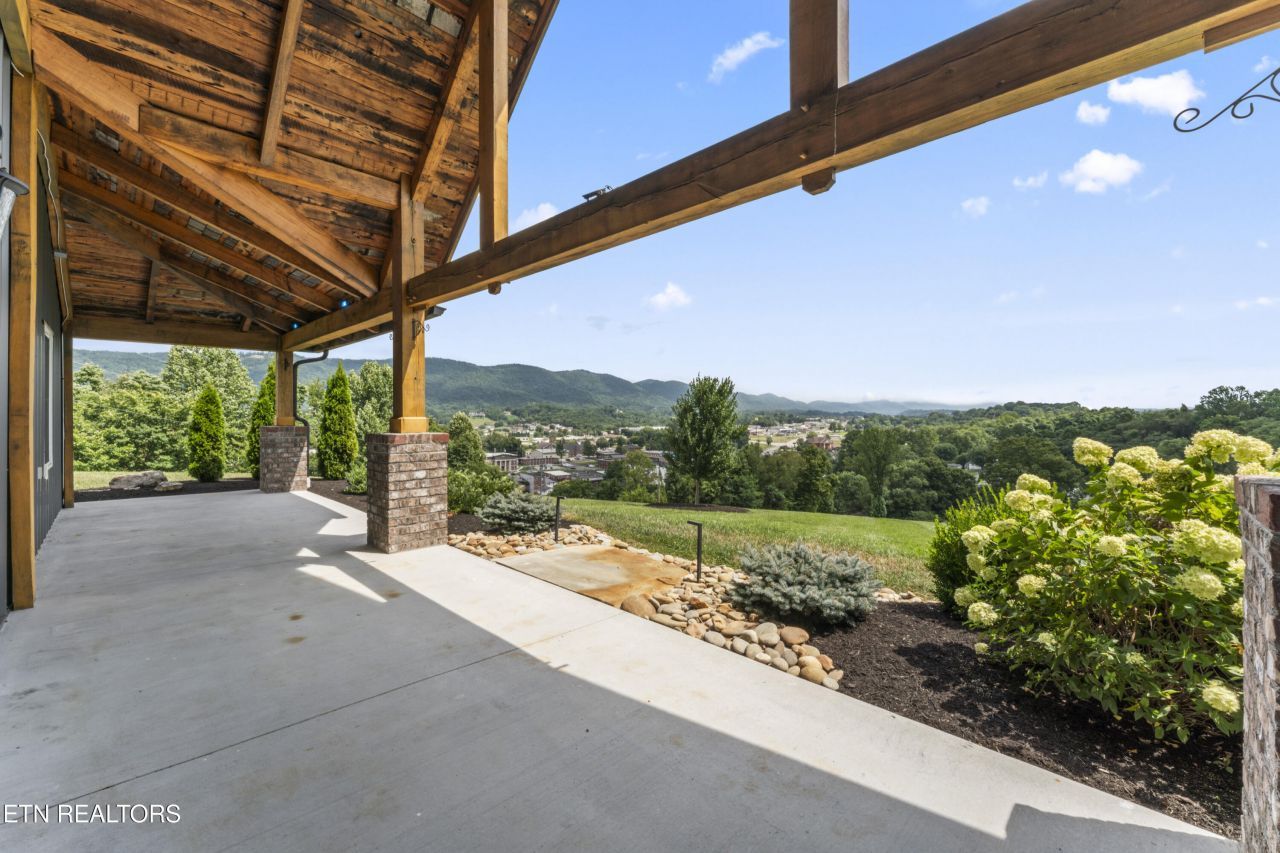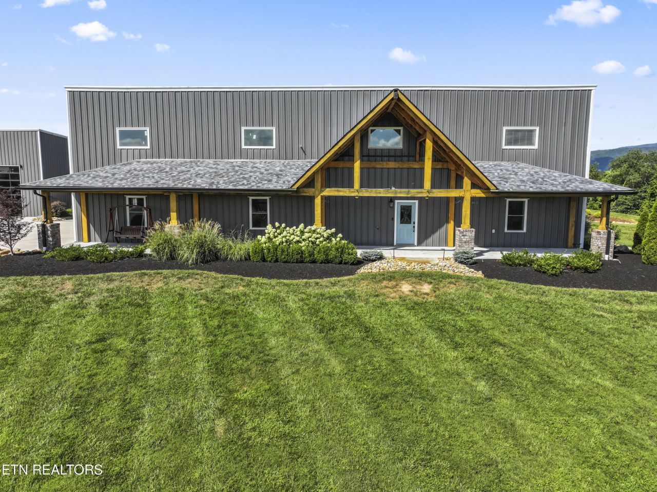 VIEWINGS BY APPOINTMENT ONLY - Discover this one-of-a-kind custom home, nestled on 7.7 picturesque acres with panoramic mountain views in every direction. Just 10 minutes from I-75, Norris Lake, and nearby ATV trails, this luxurious retreat is the perfect blend of seclusion, sophistication, and adventure. The home is has 4880 sq ft under roof with an additional 3600 sq ft detached garage. Inside, the open-concept floor plan showcases a stunning coffered white oak ceiling in the main living area. The sun-drenched kitchen features large picture windows that frame the mountain landscape, outfitted with Cafe appliances, quartz countertops, and a statement-making leathered granite island. The primary suite is a luxurious retreat complete with a fireplace, two custom walk-in closets, and a spa-inspired bathroom with detailed tilework. A 10-foot accordion-style glass door connects the great room to an expansive outdoor living space, seamlessly blending indoor and outdoor entertaining. Just off the main living space, you'll find a practical drop zone from the garage, a spacious laundry room, and thoughtful transitions throughout. Outdoor living is just as impressive, with over 1,600 sq ft of covered porches perfect for dining, relaxing, and enjoying the expansive views. The resort-style backyard includes a saltwater in-ground pool, a travertine-tiled hot tub, a putting green, and even an in-ground trampoline. Vehicle lovers and hobbyists will appreciate the oversized attached garage with a full bath and the 60x60 detached garage, which includes a separate efficiency guest suite with a full bathroom and upper-level storage. Whether you're looking to entertain, unwind, or explore, this estate offers it all.