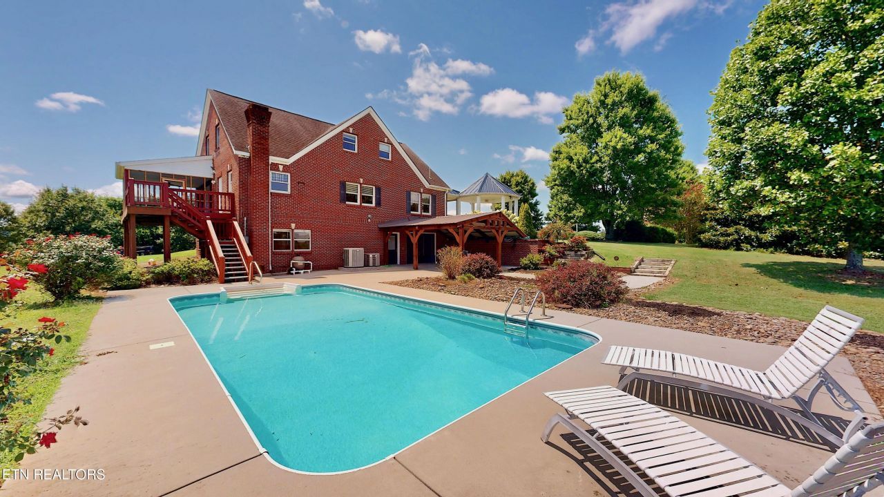 This beautiful brick home, perfectly situated on 3.2 acres, offers a blend of timeless charm and spacious comfort. Surrounded by peaceful countryside, it provides plenty of room for outdoor enjoyment while still being conveniently located to area amenities. The front porch with its warm and welcoming ambiance, invites you to sit and stay awhile. Step out back, where the screened-in porch and expansive deck overlook the sparkling inground pool-creating the perfect setting for outdoor entertaining at its finest.Inside, the main floor features a convenient laundry room just off the attached two-car garage, a large dining room and a spacious living room that flows seamlessly into the kitchen-creating the perfect setting for hosting family gatherings and entertaining friends.Just off the kitchen the master suite offers a peaceful retreat with double vanities, a walk-in closet and a spacious walk-in shower.If you travel upstairs, to the second floor, you'll find three generously sized bedrooms, each with its own private bath offering comfort and privacy for family or guests.On the walk-out basement level, there's an additional bedroom with its own private bath, a versatile game room, and a comfortable living area with an attached kitchen-perfect for extended stays or entertaining. Step right outside from this space to enjoy the pool, making it the ultimate hub for relaxation and fun.Detached from the main home is a workshop ideal for hobbies or projects, along with a large carport that can easily accommodate an oversized RV.With space, comfort, and amenities at every turn, this property offers the perfect bland of country charm and resort-style living.