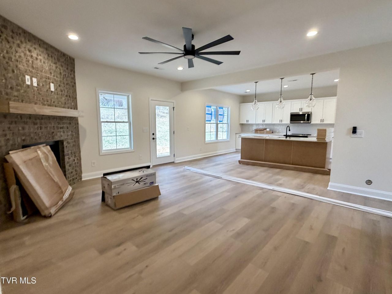 Stunning 4-bedroom, 3-bath open-concept home with over 2,700 finished square feet, located in the brand-new Lebanon Meadows community!Upon entering, you are welcomed by an inviting foyer and formal dining area highlighted by beautiful craftsman wainscoting trim. The spacious living room flows seamlessly into the kitchen and features abundant natural light, gleaming hardwood floors, and a custom brock fireplace--perfect for both relaxing and entertaining.The chef's kitchen is sure to impress with its open design, shaker-style cabinetry with soft-close doors and drawers, quartz countertops, tiled backsplash, stainless steel appliances, and an oversized 8-foot island.A fourth bedroom is conveniently located on the main level with a full bathroom just steps away in the hallway--ideal for guests or a home office.Upstairs, you'll find a generous 15x16 family/den area providing the extra living space today's families desire. The luxurious primary suite offers maintenance free LVP flooring, a stylish accent wall, dual vanities, a custom 7-foot tiled walk-in shower, soaker tub, and a large walk-in closet with laminate shelving. Bedrooms two and three are generously sized and each includes its own walk-in closet. The laundry room is also conveniently located on the second level.Unwind in the evenings on the covered back patio overlooking the backyard--perfect for outdoor dining or quiet relaxation.Kingsport's Lebanon Meadows is conveniently located in the Colonial Heights area, just minutes from the interstate, schools, and shopping.This quality home has a 1 year builder's warranty. Taxes to be assessed. All information herein deemed reliable but subject to buyers verification.Estimated completion- March 2026Lawncare is included with HOA!