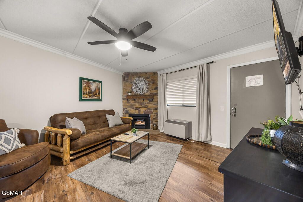 Check out this charming 1 bedroom 1 bath condo in the highly desired Olde Gatlinburg Place. Just steps from the excitement of downtown Gatlinburg! Located on the 2nd floor, you will find unit 2A directly across from the elevator for easy access. This meticulously cared for unit has a beautiful bedroom, a large walk in shower, a microwave, small fridge with freezer, and a cozy gas fireplace. It has a view of Anakeesta's chairlift. Perfect for relaxing after a day in the Smokies. It comes fully furnished, has recently had the paint touched up and the elevators were replaced in 2024.Guests love having the refreshing pool, hot tub, laundry facilities, ice and vending area- everything you need for a stress-free Smoky Mountain stay.Don't miss your opportunity to own your very own condo here in the Smoky Mountains.