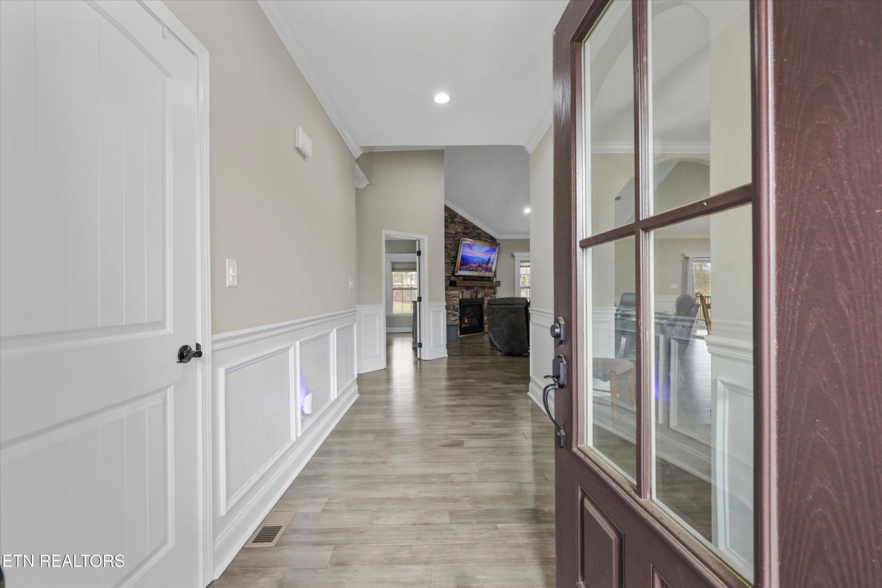 This well-maintained, nearly new home offers a highly desirable open-concept layout with 2,910 sq ft, three bedrooms on the main level, and a bonus/4th bedroom with ensuite bath. The thoughtful floor plan provides excellent flow as well as privacy with a split bedroom designThe spacious great room features a cathedral ceiling and gas fireplace and flows into the kitchen and dining areas. The open kitchen is centered around a large granite island with seating and includes tiled backsplash, under-cabinet lighting, GE Profile stainless appliances, double ovens, and soft-close cabinetry-ideal for everyday living and entertaining.The main-level primary suite offers a private retreat with a coffered ceiling, backyard views, and an ensuite bath featuring a double granite vanity, soaking tub, walk-in tiled shower with dual shower heads, and a large custom walk-in closet. Two additional main-level bedrooms are split from the primary.Upstairs, the bonus room with ensuite bath provides excellent flexibility as a guest suite, office, or media space.Outdoor living is highlighted by a large screened-in porch overlooking a tree-lined, large backyard, along with composite decking.Located in the Wyndsong subdivision, this home sits in a walkable, park-like neighborhood with Smoky Mountain views, green space, and a community pavilion.