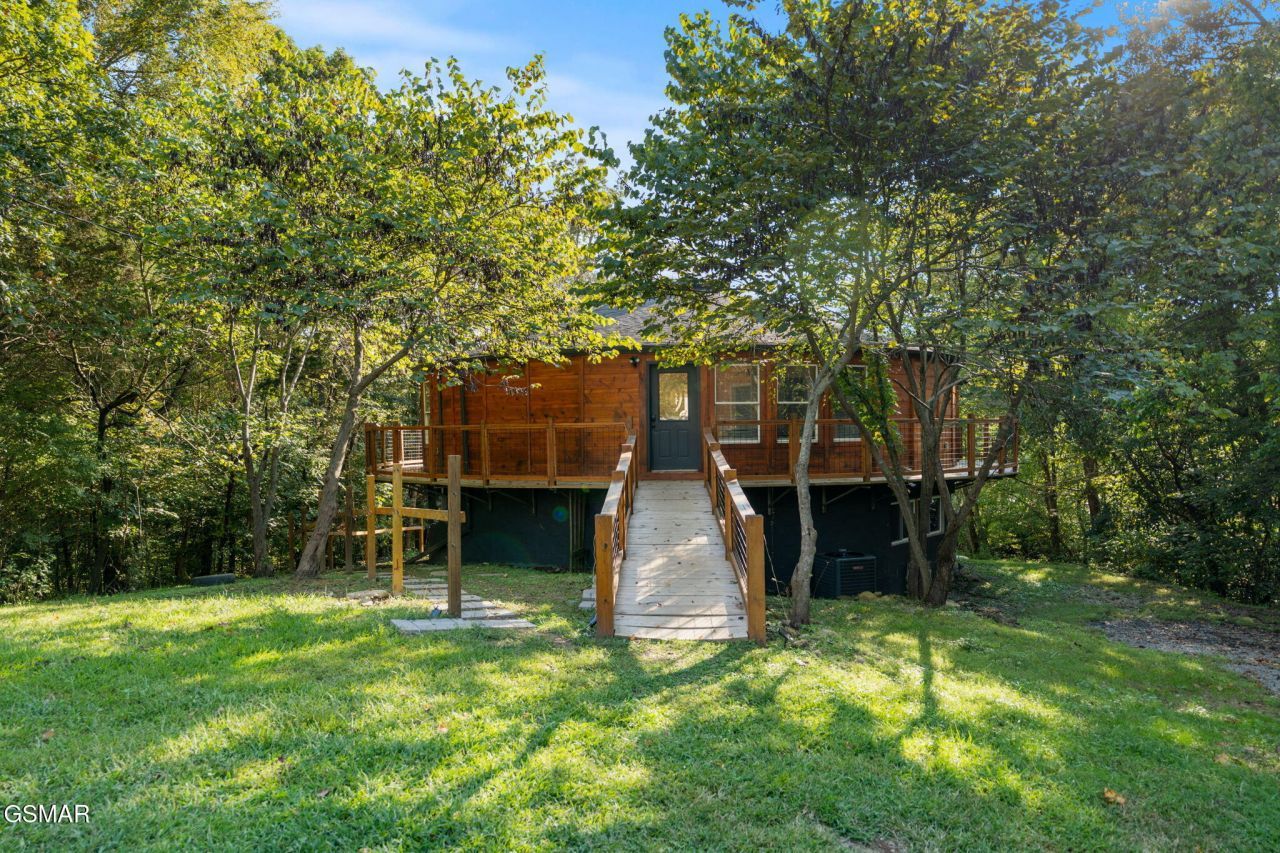 Discover this recently renovated round cabin tucked away in Kodak, just minutes from exit 407; gateway to the Great Smoky Mountains. Offering more than 3000 sq feet of space that features 3 bedrooms, 4 bathrooms, a game/media room, and hot tub this unique property combines rustic charm with modern updates, creating a welcoming retreat. Situated on approximately 4.7 acres, the lot is partially wooded and showcases about 460 feet of serene river frontage, perfect for enjoying the natural beauty of the area. Currently operating as a successful short-term rental, this cabin offers you a private getaway or an investment property. The location of this unique round cabin makes it a popular place to stay for guests visiting either the mountains or Knoxville. With its distinctive design, updated finishes, and peaceful setting, this cabin provides a rare opportunity to own a one-of-a-kind mountain property in Sevier County.