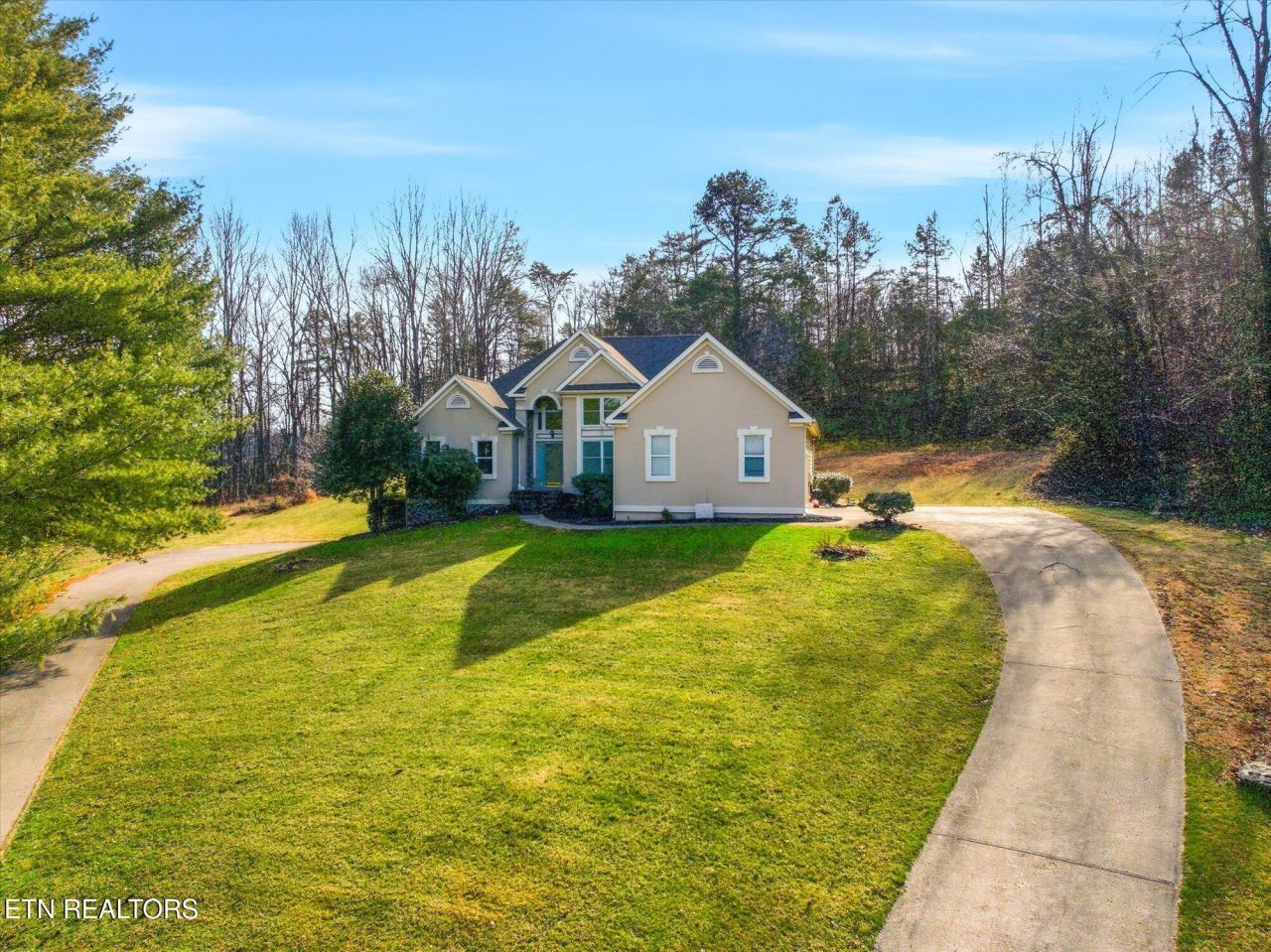 Tucked away in an established subdivision surrounded by a peaceful rural setting, this exceptional home sits proudly at the top of a private 2.13-acre cul-de-sac lot, offering both privacy and presence. A long, tree-lined approach leads to the property's two separate driveways -- one guiding you to the main-level two-car garage and the other to the additional two-car basement garage, providing a rare total of four garage spaces. Exterior up lighting and stone steps welcome you to a grand front entrance that sets the tone for the thoughtful design found throughout. Inside, expansive vaulted ceilings soar above the living room, where a gas fireplace with a granite surround serves as a stunning focal point. Well-maintained hardwood floors, abundant natural light, and oversized windows create a warm and inviting atmosphere. The formal dining room is beautifully appointed with arched doorways and an elegant chandelier, while the spacious eat-in kitchen offers timeless white cabinetry, granite countertops, tile backsplash, under-cabinet lighting, a bar overhang, breakfast nook, and two oversized pantries for exceptional storage. A door just off the kitchen opens to a composite deck overlooking the private wooded backyard, complete with wildlife guests, storage shed, and optional canopy cover (New 12 X 26 ft canopy cover is in basement) for shaded outdoor enjoyment. The main level features three bedrooms and two full bathrooms in a desirable split-bedroom layout. The primary suite is generously sized and showcases tray ceilings, a private sitting area or reading nook, two oversized walk-in closets (one in the bedroom and one in the bathroom), an oversized garden tub, walk-in tile shower, and separate water closet. On the opposite side of the home, two additional bedrooms share a full bath, offering both comfort and privacy. The main-level garage features 10+ foot ceilings, washer and dryer hookups (with additional hookups available in the pantry in the kitchen), pull down attic access with additional storage, and a pull-down screen door with a walkout man door for added convenience without the pests! Downstairs, the finished basement expands the living space significantly, offering a massive bonus room with a second gas fireplace and custom built-ins, three large storage closets, a full bathroom, bonus room/office (with closet), kitchenette, and access to the additional two-car garage -- ideal for guests, multi-generational living, or flexible use. Additional highlights include a water softener, Pella windows in the dining and living room, HVAC replaced in 2022, and a water heater replaced in 2022. This home offers the perfect balance of privacy, functionality, and timeless design -- all within a quiet, convenient, established community setting.