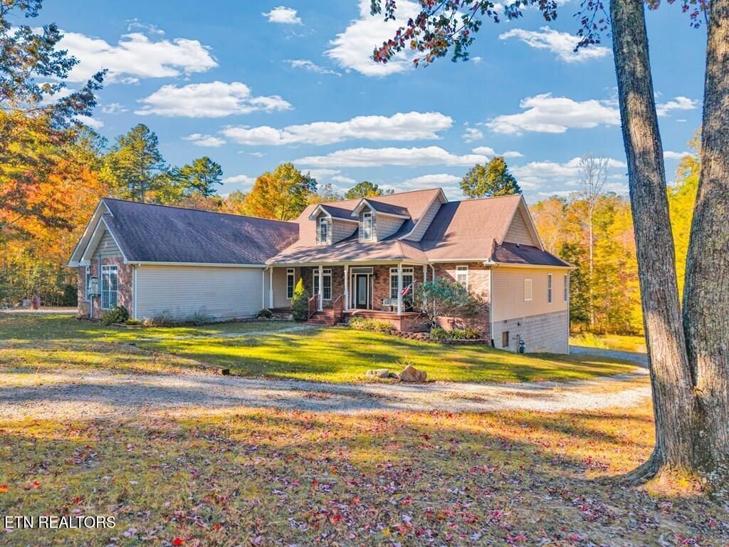 Custom-built home on 8.8 wooded acres in Cumberland Cove offering privacy, space, and versatility. This 5-bedroom, 4.5-bath home features 4,396 sq ft with hardwood floors, solid wood doors, granite countertops, stainless appliances, and a floor-to-ceiling gas fireplace. Two main-level primary suites plus a formal dining room and dedicated home office provide flexible living options. The finished walk-out basement includes its own driveway, entrance, kitchen, bedroom, full bath, and bonus space--ideal for guests, multigenerational living, or potential rental use. Enjoy a peaceful spring-fed pond, about 3 cleared acres suitable for animals, a wired and insulated 12x16 shed, central vacuum, security system, generator, and newer HVAC. A rare blend of acreage, upgrades, and functionality in a scenic Tennessee setting.